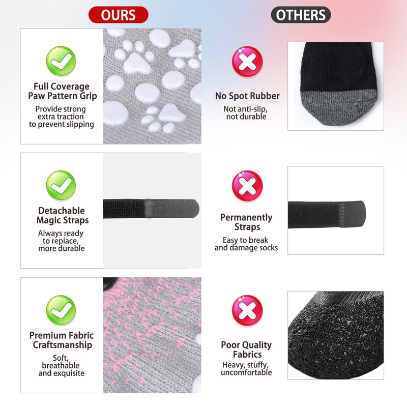 - 🐾Multi-Functional: These indoor non-slip dog socks are great for protecting your beloved pet's paws, and if your dog is unfortunate enough to get injured, they can act as wound recovery socks to prevent your dog from licking wounds and the comfortable breathable fabric helps speed up wound healing. In addition, you no longer have to worry about furniture, hardwood floors, sofas, tables, and chairs being scratched by claws, this is a quality dog sock that can bring you convenience!