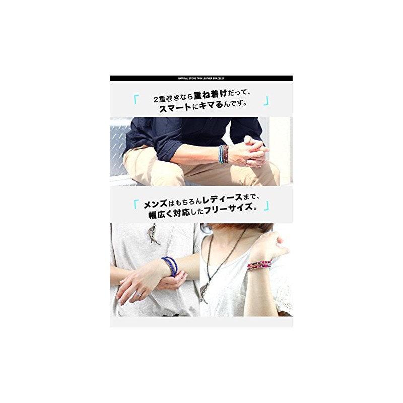 Binich Natural Stones, Leather Bracelet, 2-Layered Roll