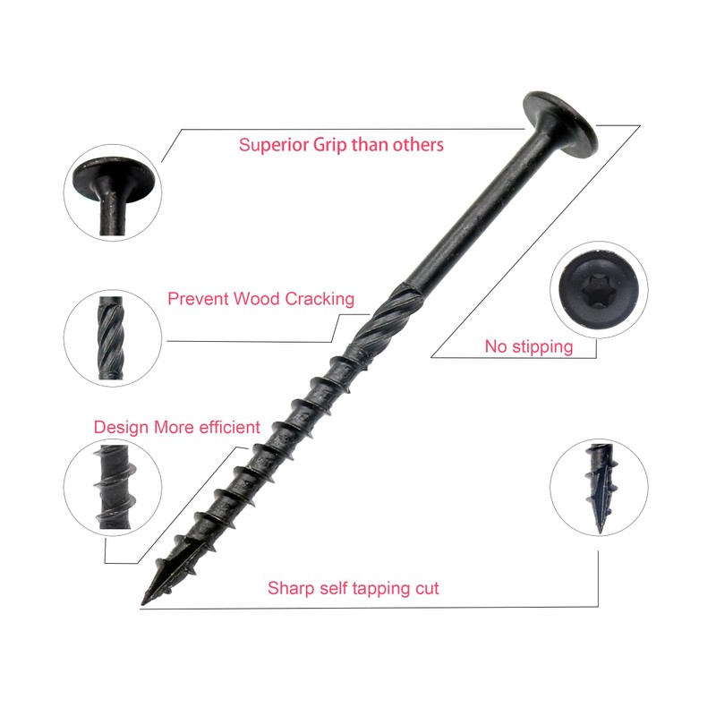 - QUALITY MATERIAL: The binifiMux T30 wood screw is made of quality carbon steel 22H with grade A, plated with black zinc to last the lifetime