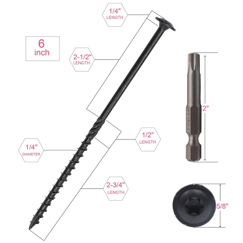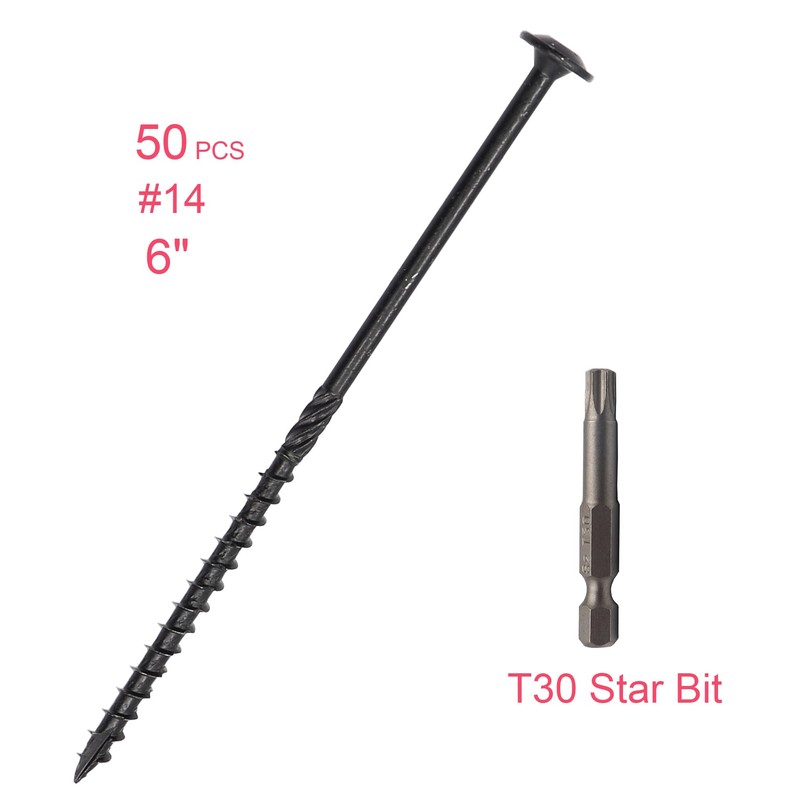 - VALUABLE DECKING SCREWS: There are 50 pieces #14 thread timber screws with a total length of 6 inches, good for outdoor deck, landscape, in addtion to come with one 1/4" shank tor screwdrive bit