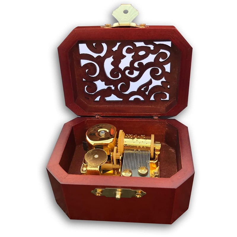 BinkeGG Brown Color Wooden Hollow Out Wind up Music Box with Sankyo Musical M...