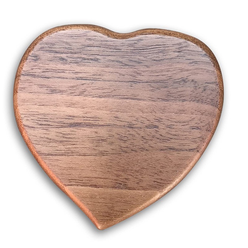 • Walnut Wooden heart shape music box with a mirror on cover.