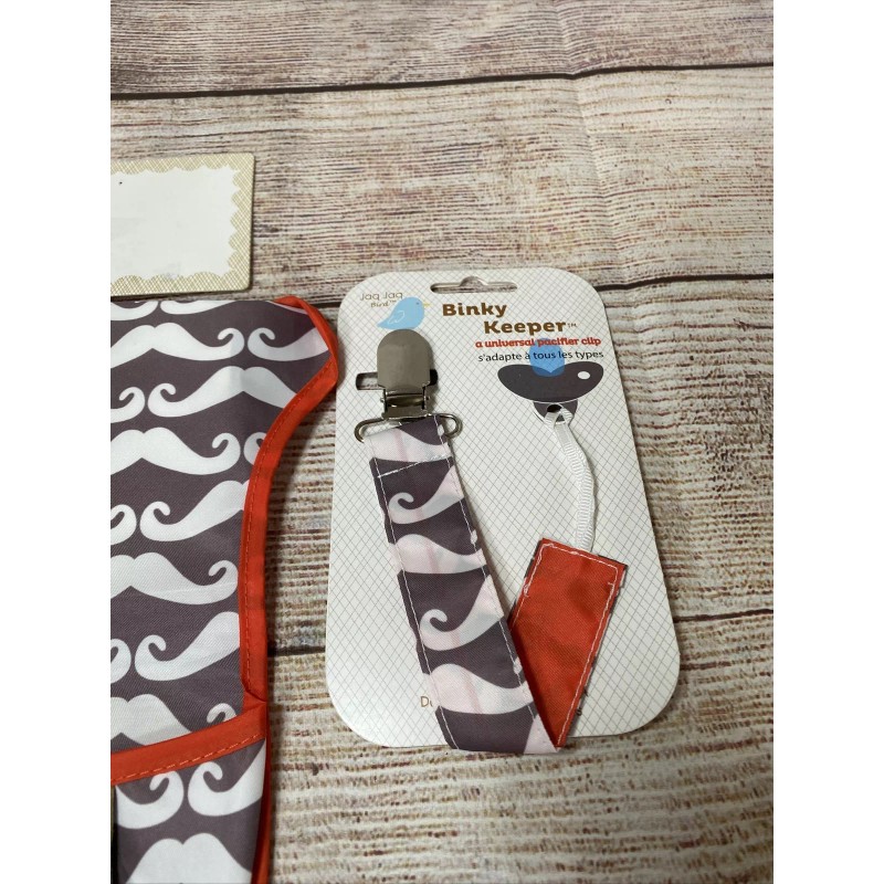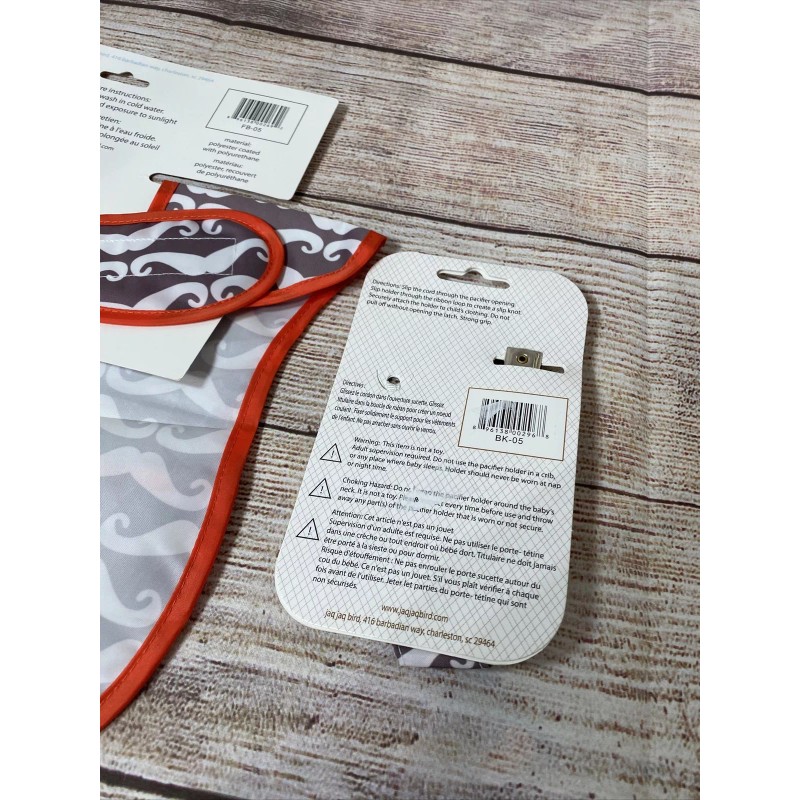 binky keeper Jaq-jaq Bird Mustache Baby Pacifier Leash Binky Keeper Matching Feeding Bib