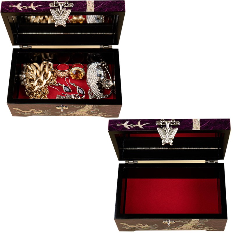 - Metal clasps hinges / Soft velvet inner lining - which protect your jewelry from scratch. The butterfly metal handle is easy to grasp and pull, allowing you to open the lid effortlessly.