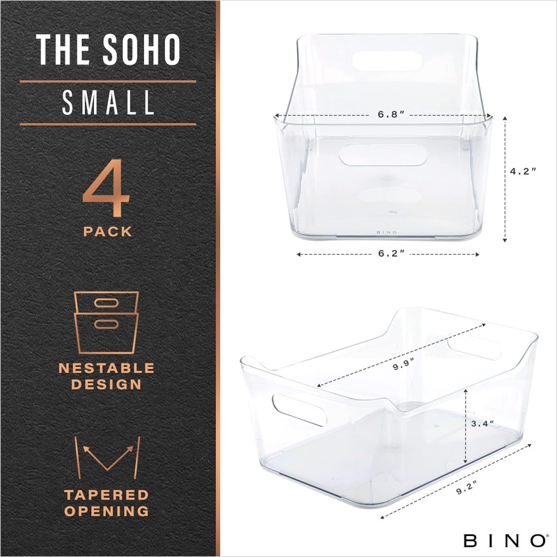 BINO BINO | Plastic Organizer Bins, Small - 4 Pack | The SOHO Collection | Multi-Use Plastic Bin | Pantry & Freezer Organizer Bin | Storage Containers | Bins for Home & Kitchen Org