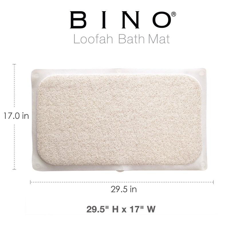 BINO | Loofah Non-Slip Bath Mat for Tub - Ivory | Spa-Inspired Comfort, Quick-Drying, Secure Suction Cups | Exfoliating Shower Mat for a Luxurious and Safe Bathing Experience