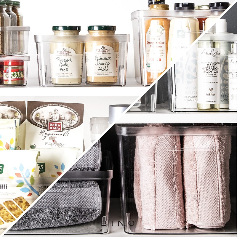 BINO | Plastic Storage Bins, Small - 24 Pack | The Lucid Collection | Multi-Use Organizer Bins | Built-in Handles | BPA-Free | Pantry Organization | Home Organization | Fridge Organizer | Freezer Org