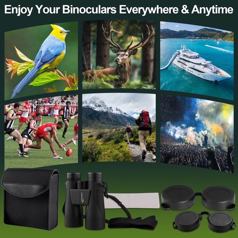 - COMPLETE ADVENTURE KIT & GIFT OF EXPLORATION Each set comes with a 15x56 binoculars, protective case, cleaning cloth, lanyard and user manual. It is an amazing gift for bird watchers, with a powerful and stable field of vision. The hunting binoculars can be a gift for your father, mother, husband, friend.