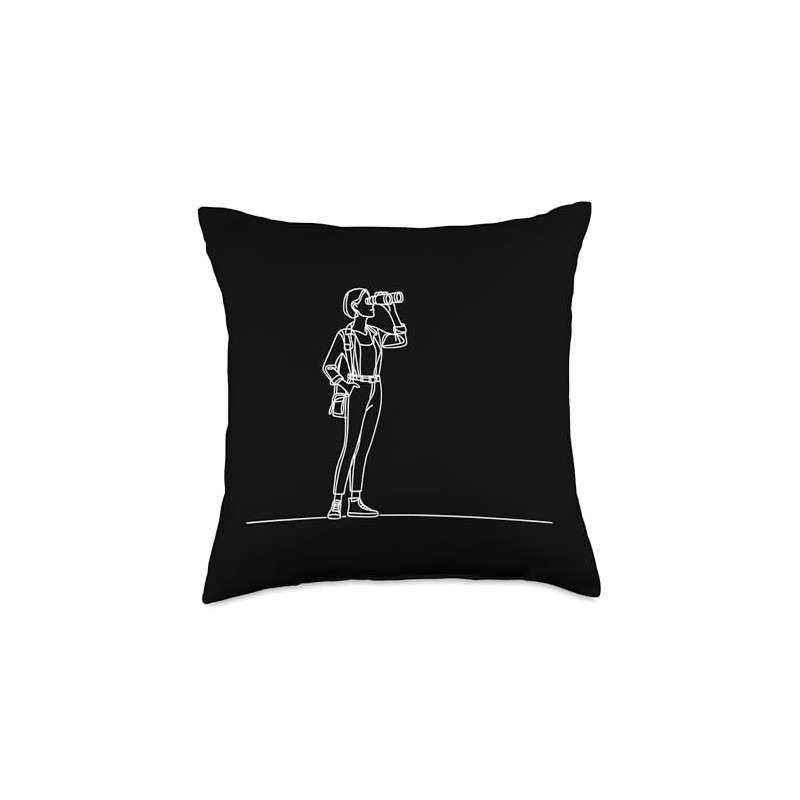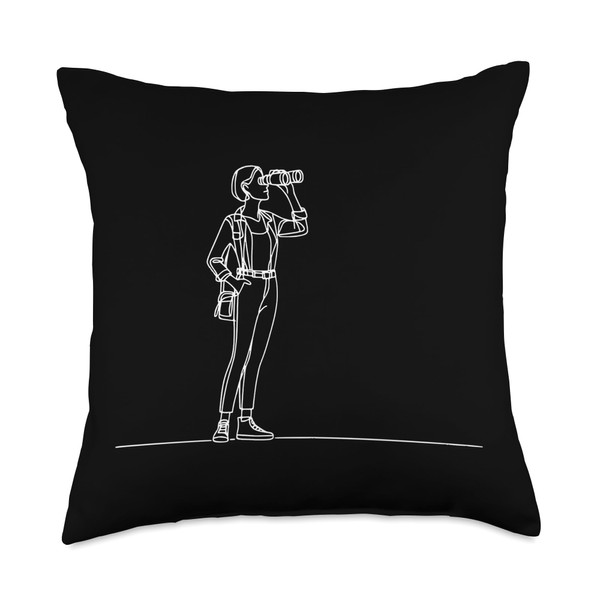 Binoculars One Line Art Drawing Bird Watching Throw Pillow
