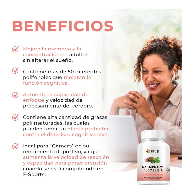 Bio B | Neumentix® + Omega 3 | Nootropico, Concentración