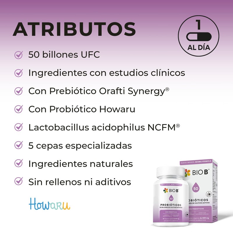 BIO B | Probi贸ticos 50 billones + prebi贸ticos | 30 c谩psulas veganas