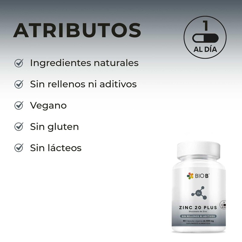BIO B ǀ Zinc 20 Plus ǀ 90 Cápsulas Veganas