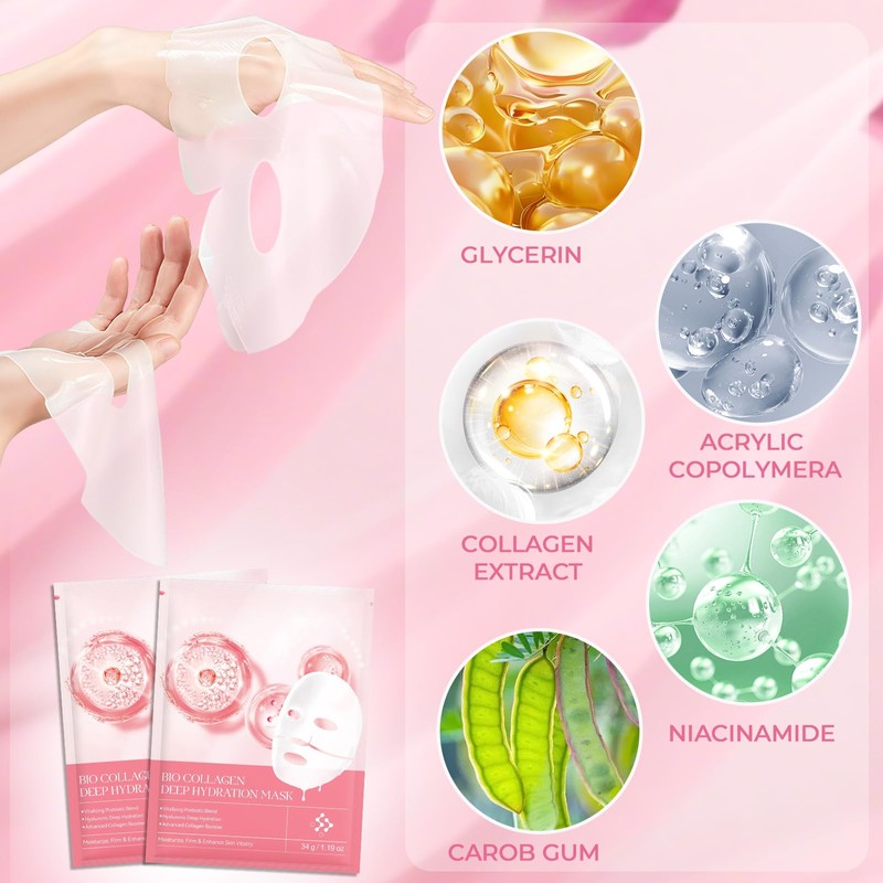 Bio Collagen Mask, Overnight Maske Gesicht, Beruhigend, Feuchtigkeitsspendend...