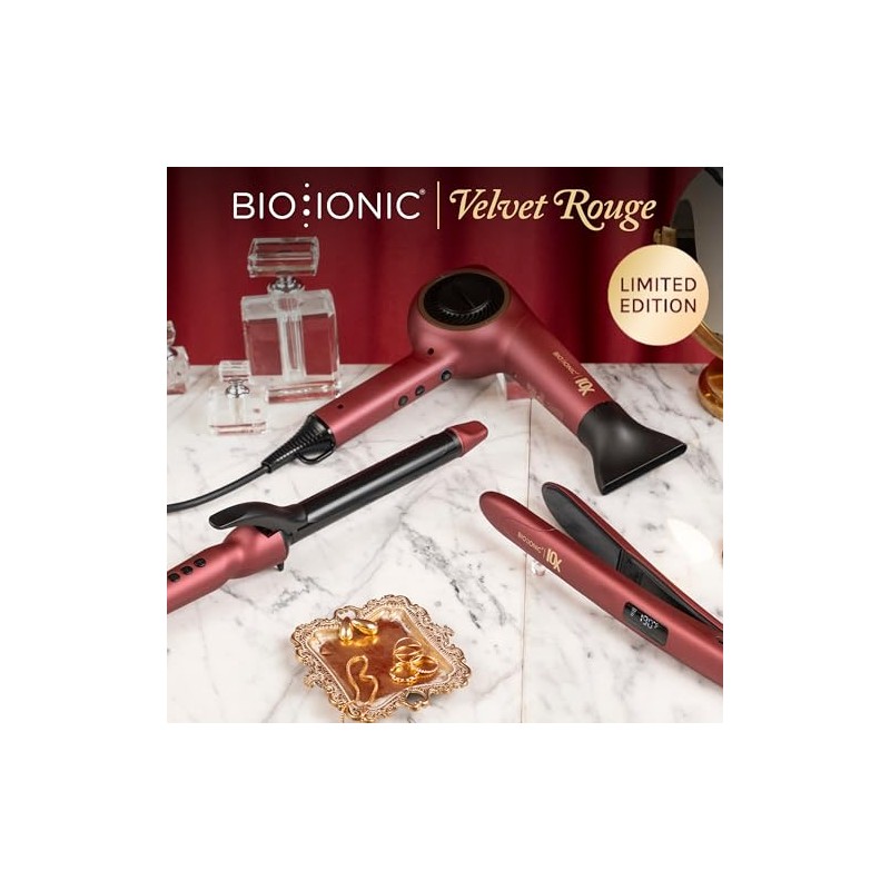 BIO IONIC Bio Ionic Long Barrel Styler, 1" Curling Iron with Moisture Heat Technology & NanoIonic MX, Verstatile Curling Wand with Longer Barrel for Large Sized Soft Curls & Waves, Limited Edition Velvet Rouge
