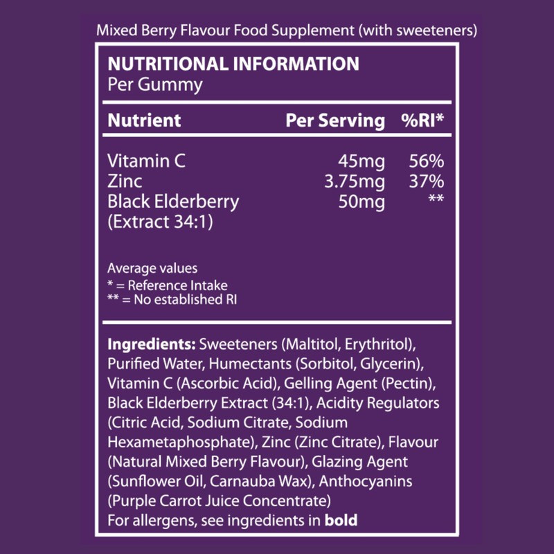 - Delicious Defence: Ensuring your child gets the essential nutrients they need has never been easier or more enjoyable. These Gummies come in a delicious gummy formula that kids love, making daily supplementation a treat rather than a chore. Packed with immune-supporting nutrients like Vitamin C, Zinc, and Elderberry, these gummies provide a tasty and convenient way to bolster your child's immune system. Vitamin C offers powerful antioxidant protection, Zinc supports the development and function of immune cells, and Elderberry adds an extra layer of antiviral and anti-inflammatory benefits.