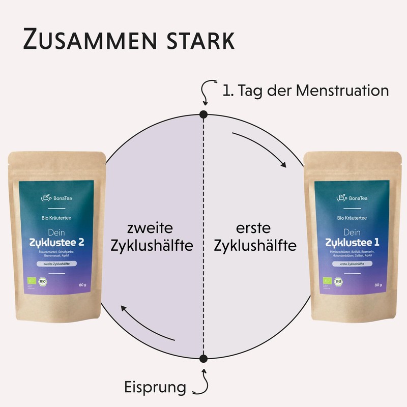 - ZWEITE ZYKLUSHÄLFTE: Lass dich von unseren geschmacklich sanft abgestimmten Zyklus-Tee 2 durch deine zweite Zyklushälfte begleiten, welche vom Eisprung bis zum Beginn deiner Menstruation geht.