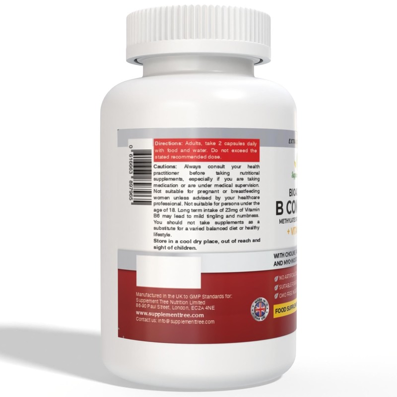 - HIGH STRENGTH BIOACTIVE B COMPLEX WITH VITAMIN C - Powerful daily formula combining all 8 essential B vitamins in active, high-absorption forms – including Methylcobalamin (B12), 5-MTHF Folate, P5P (B6), and Riboflavin-5-Phosphate (B2). Enhanced with 200mg Vitamin C (Calcium Ascorbate) per serving to support overall nutrient intake. Ideal for anyone looking for a premium, high-potency B vitamin supplement.