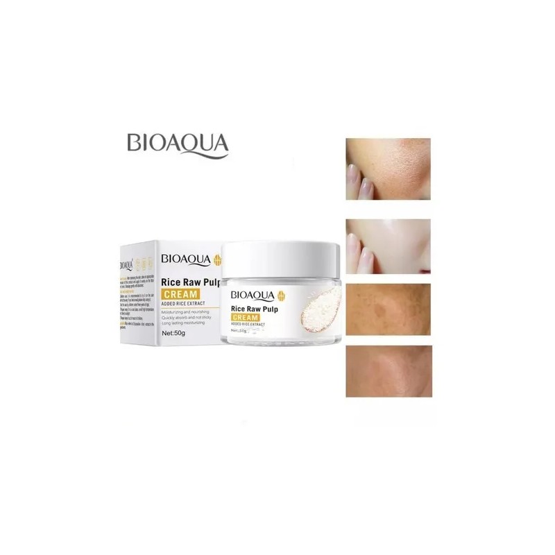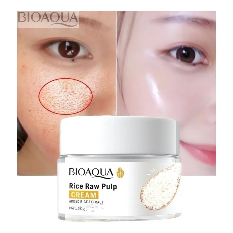 🌟 Bioaqua Crema Facial con Extracto de Arroz y Ácido Hialurónico, Reduce Manchas y Poros, Uso Día y Noche 🌟