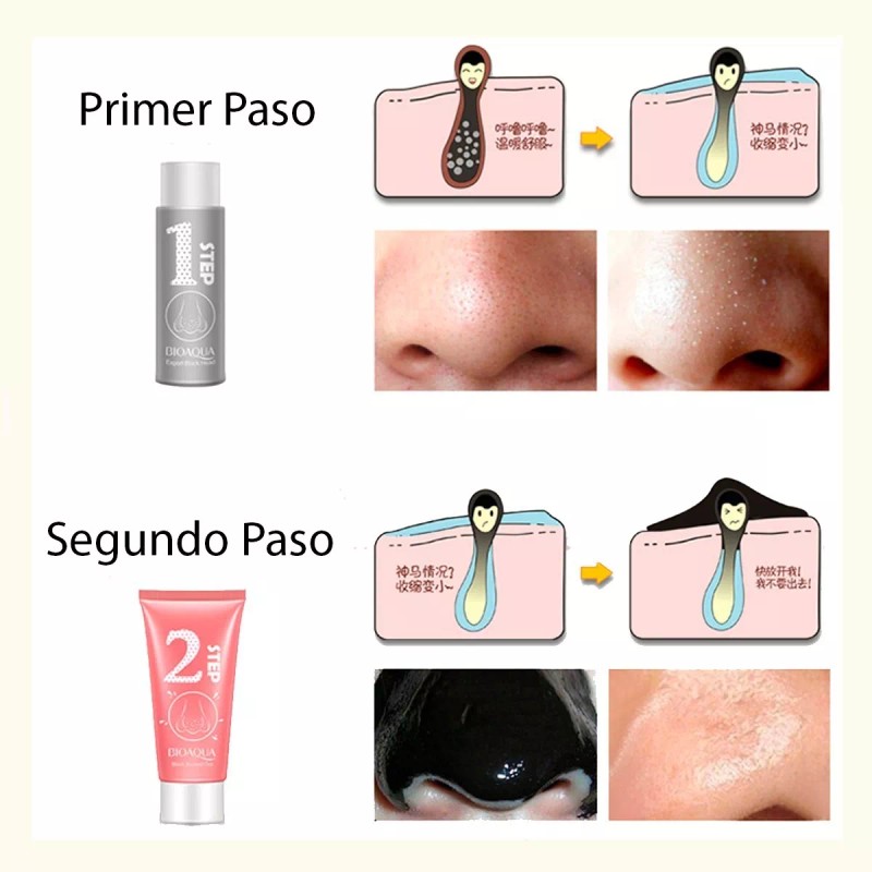 Tratamiento en 3 pasos para Puntos negros Kit Removedor Extractor Puntos Negros Espinillas Acne Full