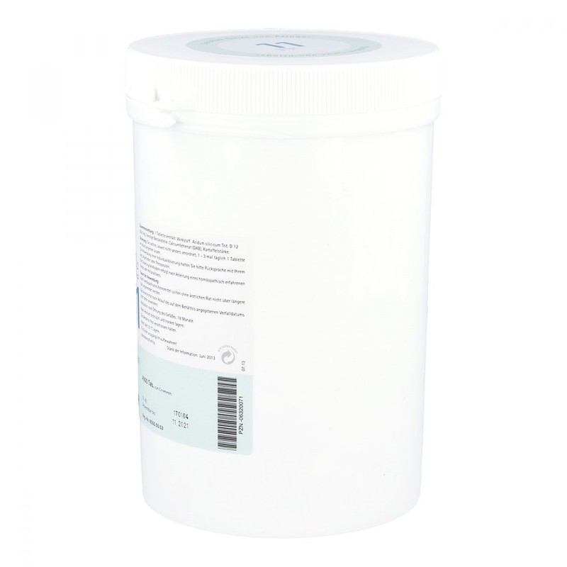 Biochemistry PFLÜGER No. 11 Silicea D 12. Active ingredient: Acidum silicicum trit. D 12. Areas of application: registered homeopathic medicine, therefore without indication of therapeutic indication. Warning: contains lactose.