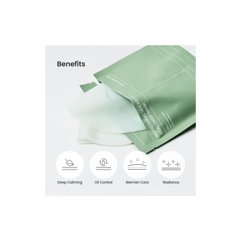 BIODANCE BIODANCE Refreshing Sea kelp Real Deep Mask, Overnight Hydrogel Mask, Calming, Oil & Sebum Control, Blemish Care 1.19oz(34g) x 4ea