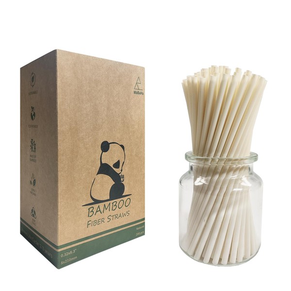 -200Pcs | 0.32'×8.3" | Disposable Drinking Straws | Biodegradable Bamboo Fiber Straws