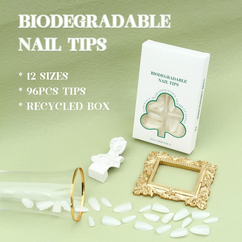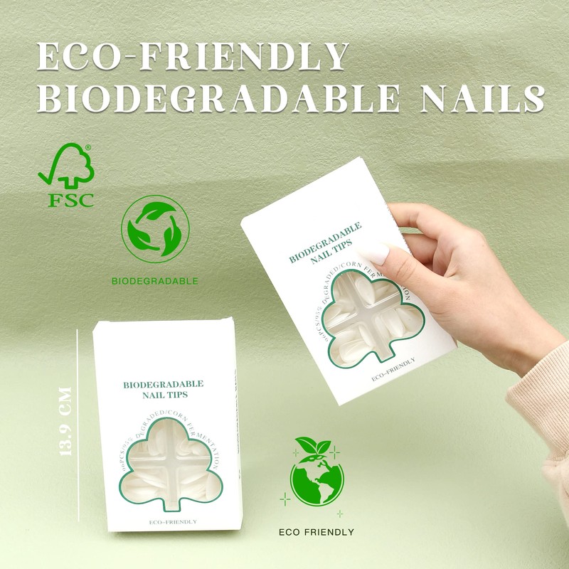 - { Recycled Package } The box is made of special recyclable paper (FSC standard), matching biodegradable nails to give you a green nail salon experience.