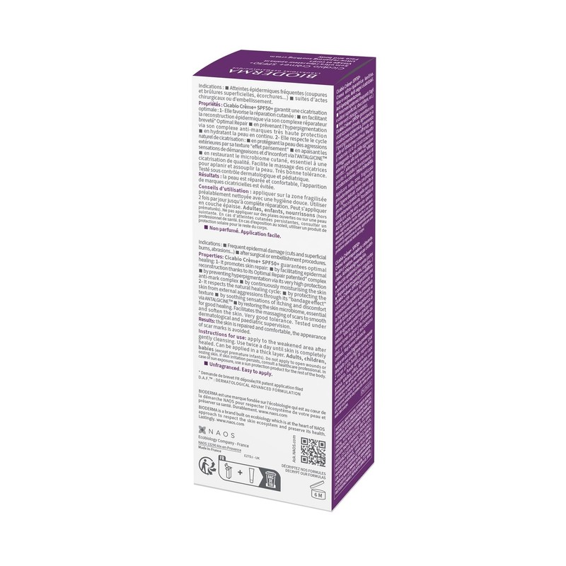Bioderma Cicabio SPF50+ Cream - Repairing, Soothing & Protecting Cream with SPF 50+, Limits the Risk of Hyperpigmentation & Repairs Skin Exposed to Sun 40 ml