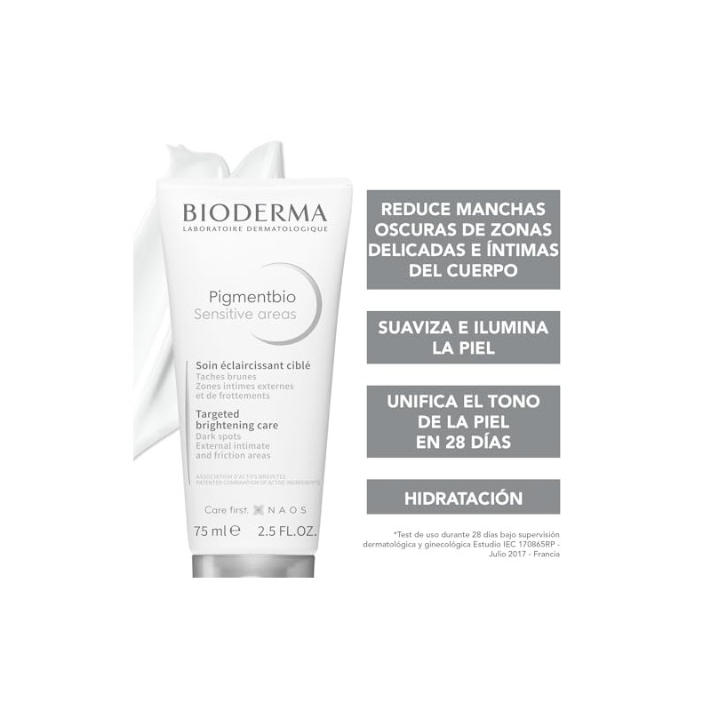 Bioderma - BIODERMA, Crema Despigmentante, Pigmentbio Sensitive Areas, Crema Hidratante para Cuerpo, Reduce Manchas Oscuras, 75ml