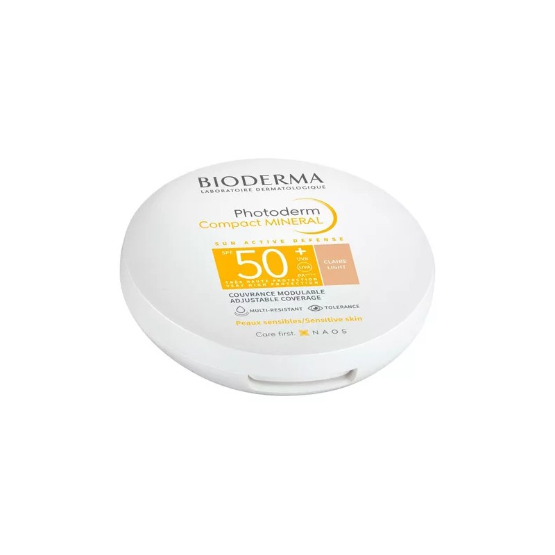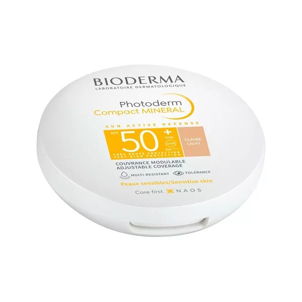 Bioderma Photoderm Mineral Compacto SPF 50 es un cuidado que asegura una muy alta protección contra los rayos UVA y UVB y la luz visible. Desarrollado para pieles sensibles. Con cobertura ajustable. Multi-resistente. Bien tolerado. Disponible en dos tonos: Transparente y Dorado. Dermatológica y oftalmológicamente probado.