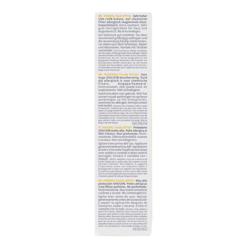 - Bioderma Photoderm Mineral Spray SPF50+, 100 ml, es un protector solar fluido en crema diseñado especialmente para pieles sensibles o intolerantes a los filtros químicos. Ofrece una protección solar mineral de amplio espectro con una textura agradable y ligera. Beneficios: