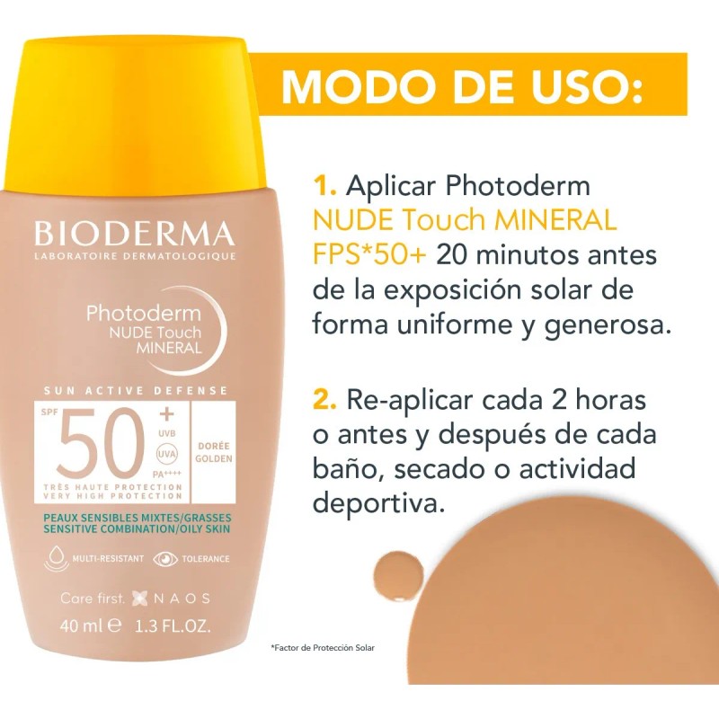 Bioderma Photoderm Nude Touch Spf50+ Tono Dorado, 40 Ml