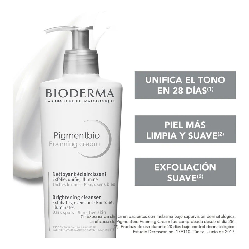 bioderma pigmentbio foaming cream 500 ml méxico, limpiador facial antimanchas bioderma, crema espumosa para aclarar la piel, limpiador con niacinamida y vitamina C, exfoliante suave piel sensible.