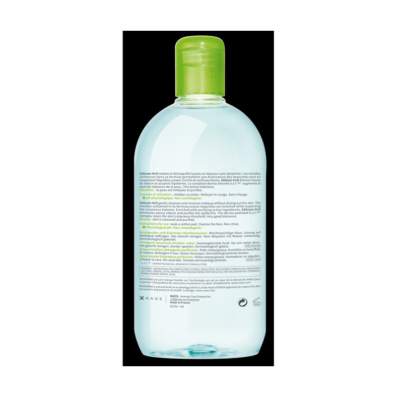 BIODERMA innovation, Sébium H2O gently cleanses the skin without drying it, through the micro-emulsion of impurities and excess sebum.