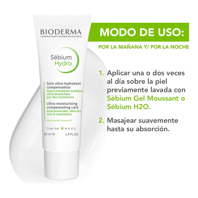 La gama de Bioderma Sébium se ha inspirado en los tratamientos usados por dermatólogos y ha desarrollado la tecnología Fluidactiv™ que minimiza la aparición de imperfecciones con su uso continuo. Sébium te acompaña siempre con el hidratante Sébium Hydra para piel mixta, grasa o con tendencia acnéica. Restaura y suaviza la piel acnéica afectada por isotretinoína. Alivia rojeces, regula el sebo y previene imperfecciones hidratando y reparando profundamente.