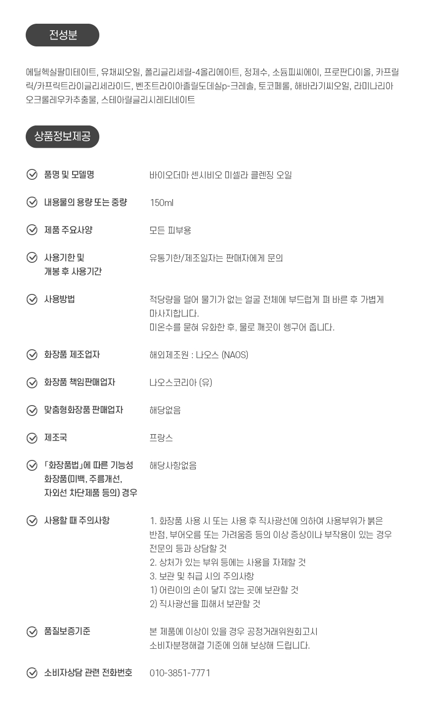 Bioderma Sensibio Micellar Cleansing Oil 150ml, 1 unit / 바이오더마 센시비오 미셀라 클렌징 오일 150ml, 1개