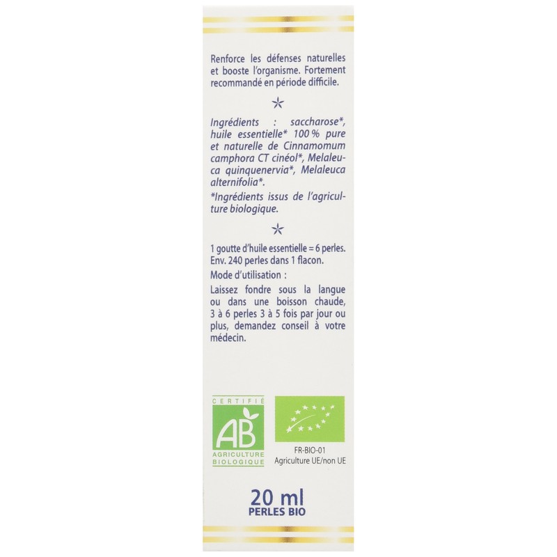 - Sugar, water, essential oils* (Cinnamomum Camphora CT Kineol*, Melaleuca quinquenervia*, Melaleuca alternifolia*). * Organic product certified by Ecocert FR-BIO-01