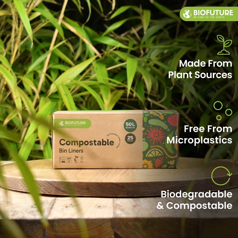 - Certified Compostability: Biofuture's liners are certified for both commercial and home composting, ensuring they break down efficiently and contribute to the creation of nutrient-rich compost. By choosing our bin liners, you're actively participating in the reduction of plastic waste and promoting a more sustainable waste management system.