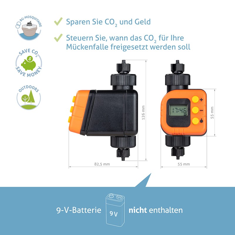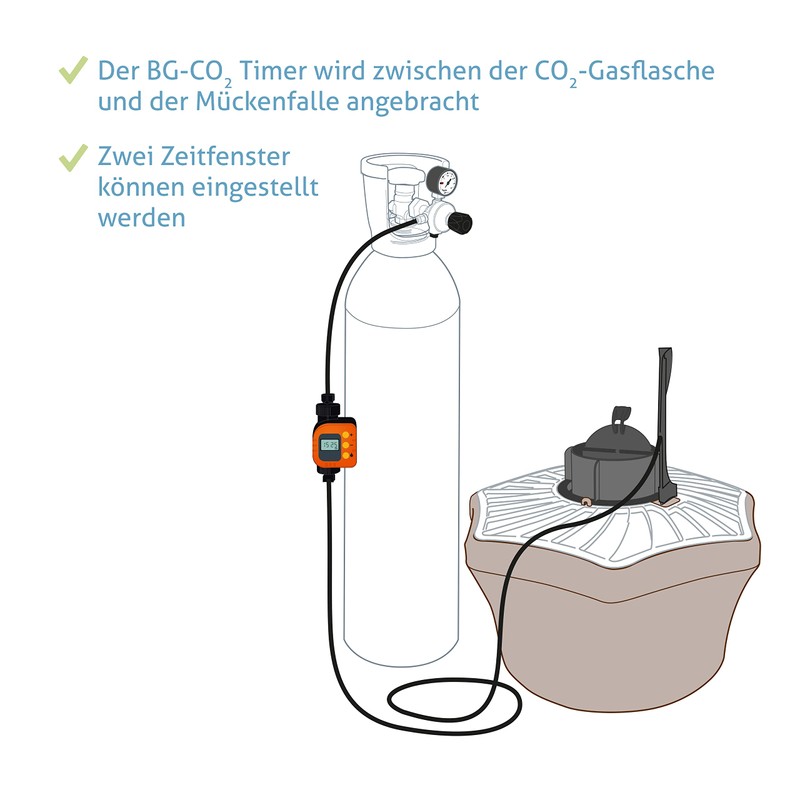 - Biogents - CO2 mosquito traps: the BG CO2 timer can limit CO2 consumption to the activity times of mosquitoes