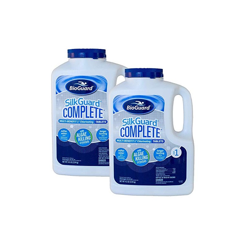 BioGuard SilkGuard Complete 1” Chlorinating Tablets, 4.5 lb, Pack of 2, Chlorine Tablets for Sanitizing Swimming Pools