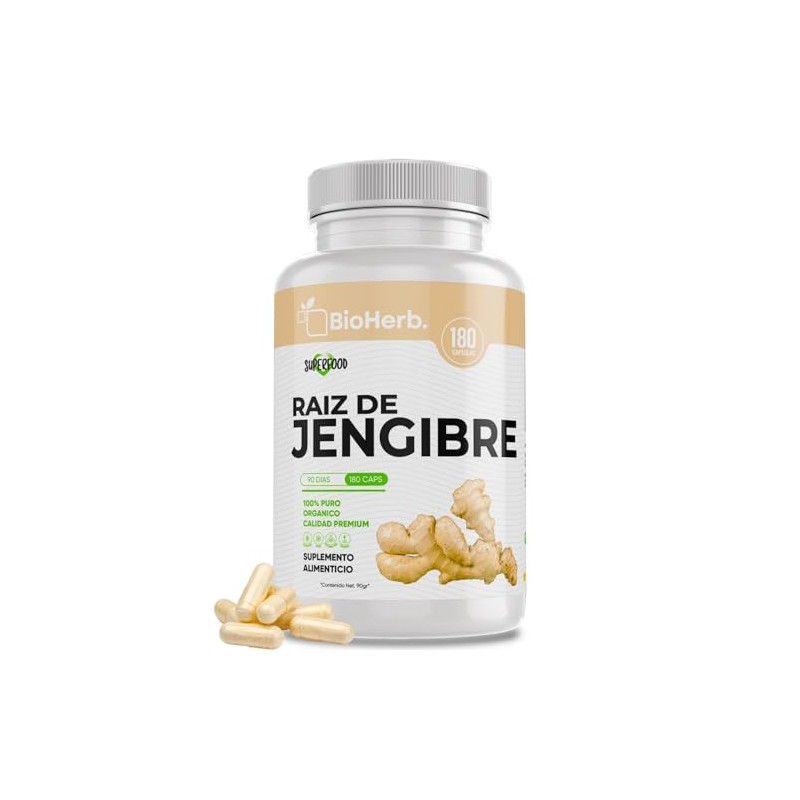 Acerca de este artículo Extracto Premium de Jengibre: Las cápsulas de Jengibre BioHerb contienen un extracto premium derivado de la potente raíz de jengibre. Te ofrecemos la esencia pura del jengibre, celebrada por sus propiedades naturales y beneficios para la salud. 180 Cápsulas para Uso Extendido: Con 180 cápsulas por envase, BioHerb garantiza que tengas un suministro amplio de Jengibre para un uso sostenido. Conviértelo en parte de tu rutina diaria para una vitalidad duradera. Item form : Jengibre 90 Dias Dosage form : Cápsula.
