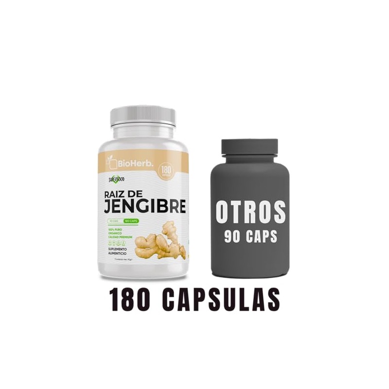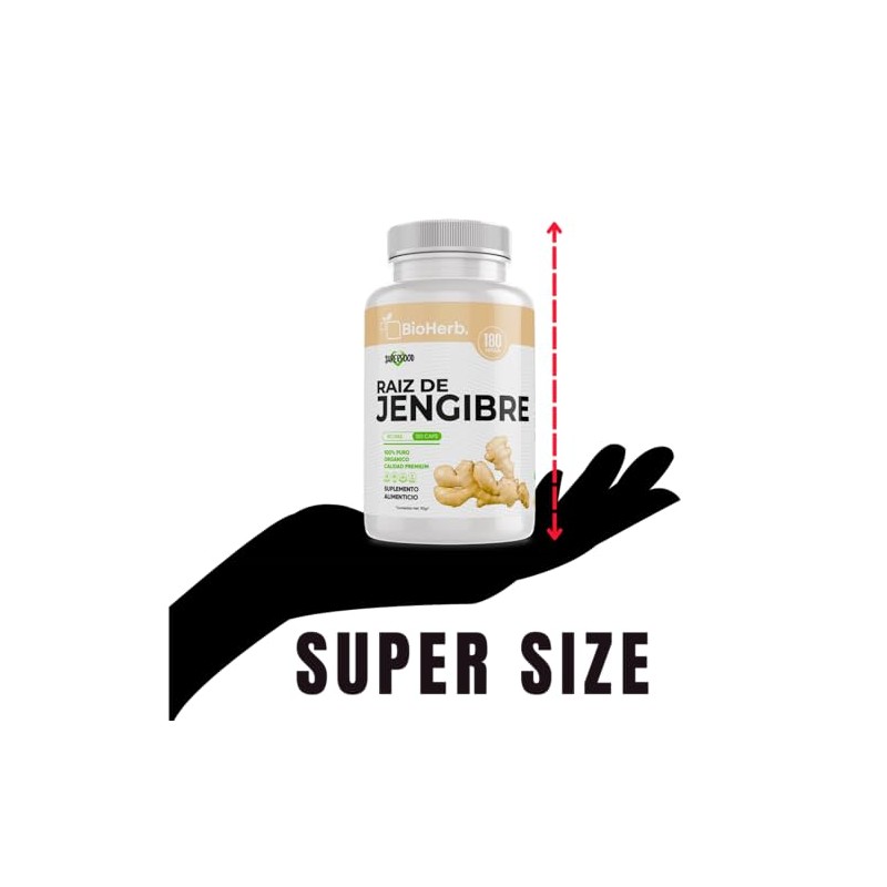 Acerca de este artículo Extracto Premium de Jengibre: Las cápsulas de Jengibre BioHerb contienen un extracto premium derivado de la potente raíz de jengibre. Te ofrecemos la esencia pura del jengibre, celebrada por sus propiedades naturales y beneficios para la salud. 180 Cápsulas para Uso Extendido: Con 180 cápsulas por envase, BioHerb garantiza que tengas un suministro amplio de Jengibre para un uso sostenido. Conviértelo en parte de tu rutina diaria para una vitalidad duradera. Item form : Jengibre 90 Dias Dosage form : Cápsula.