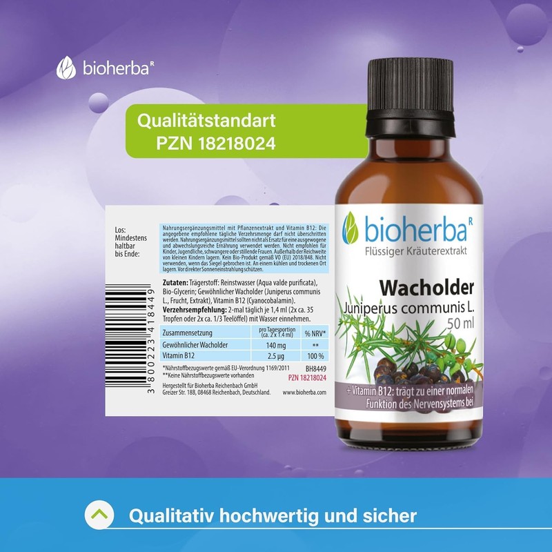 Experience the tradition and effectiveness of juniper in every bottle of BIOHERBA Juniper drops. Trust in the power of nature to support your nervous system and promote your well-being. Choose BIOHERBA for a natural and holistic approach to health and wellness.