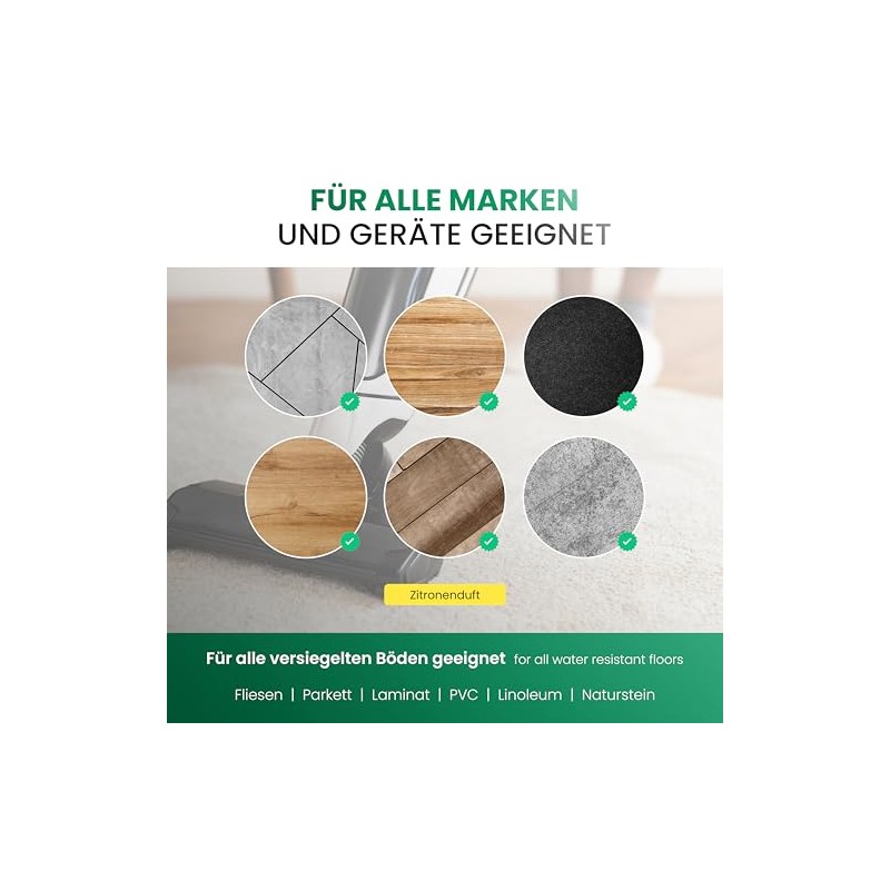 - üå± NAT√úRLICH CLEVER: Um Schlieren und Schmierfilme zu vermeiden, achten Sie stets auf das korrekte Mischverh√§ltnis. Sp√ºlen Sie den Tank Ihres Wischroboters w√∂chentlich mit klarem Wasser aus, um Verstopfungen zu verhindern.