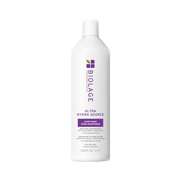 Product DescriptionIntroducing our Ultra Hydra Source Conditioner, an essential for extremely dry, thick, or coarse hair. This 400 ml conditioner features a moisture concentrate of cold-pressed Cupua?u butter and filtered salicylic acid that effectively reduces buildup. Experience intense conditioning, leaving your hair supremely soft, supple, and manageable. Ultra Hydra Source Conditioner delivers 72 hours of moisture and frizz control, with 6x more moisture after just one use. Our vegan formula has no animal-derived ingredients or byproducts, parabens, mineral oil, silicone, and colorants. Apply to wet hair for 1-3 minutes and rinse thoroughly. Achieve your hair goals with Ultra Hydra Source Conditioner, your ultimate hydration companion.Brand Story:Professional By Nature. Honest By Choice. A recognized leader in haircare, BIOLAGE offers high-quality hair care products powered by botanicals