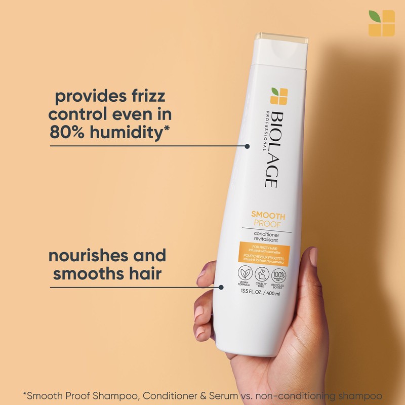 Biolage Smoothproof Conditioner 400ml is a hair conditioner that provides humidity control and anti-frizz smoothness even in 97% humidity, inspired by nature's water-resistant camellia.