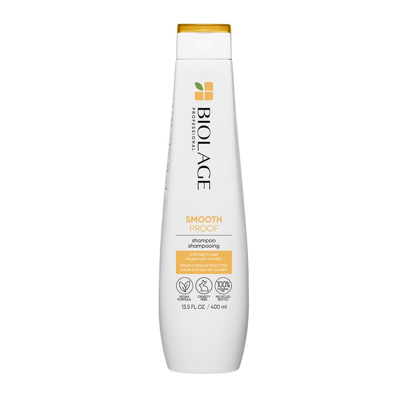 What are the benefits and features of Biolage Smoothproof Shampoo 400ml?- Provides humidity control and anti-frizz smoothness for frizzy and unmanageable hair.