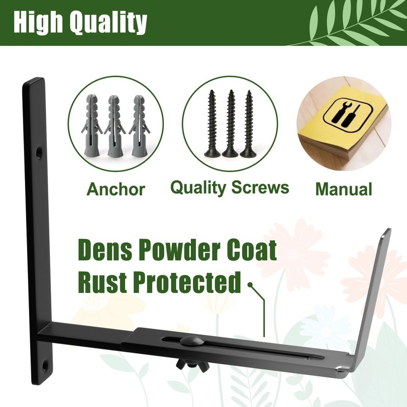 - Versatile Utility: A fusion of anti-rust and anti-corrosion properties, our brackets can be used both indoors and outdoors. Easily affixed to walls, beneath windows, or bolted to porch or deck railings, they secure all types of planter boxes, enabling you to add a touch of greenery wherever you choose.