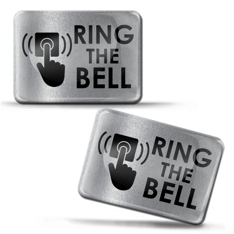 Biomar Labs 2 x 3D Gel Notice Sign Ring the Bell for Outdoor Indoor Use Silver Stickers for Gate Door KS 164