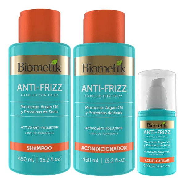 - Biometik Kit AntiFrizz 3 en 1 Shampoo + Acondicionador + Aceite -